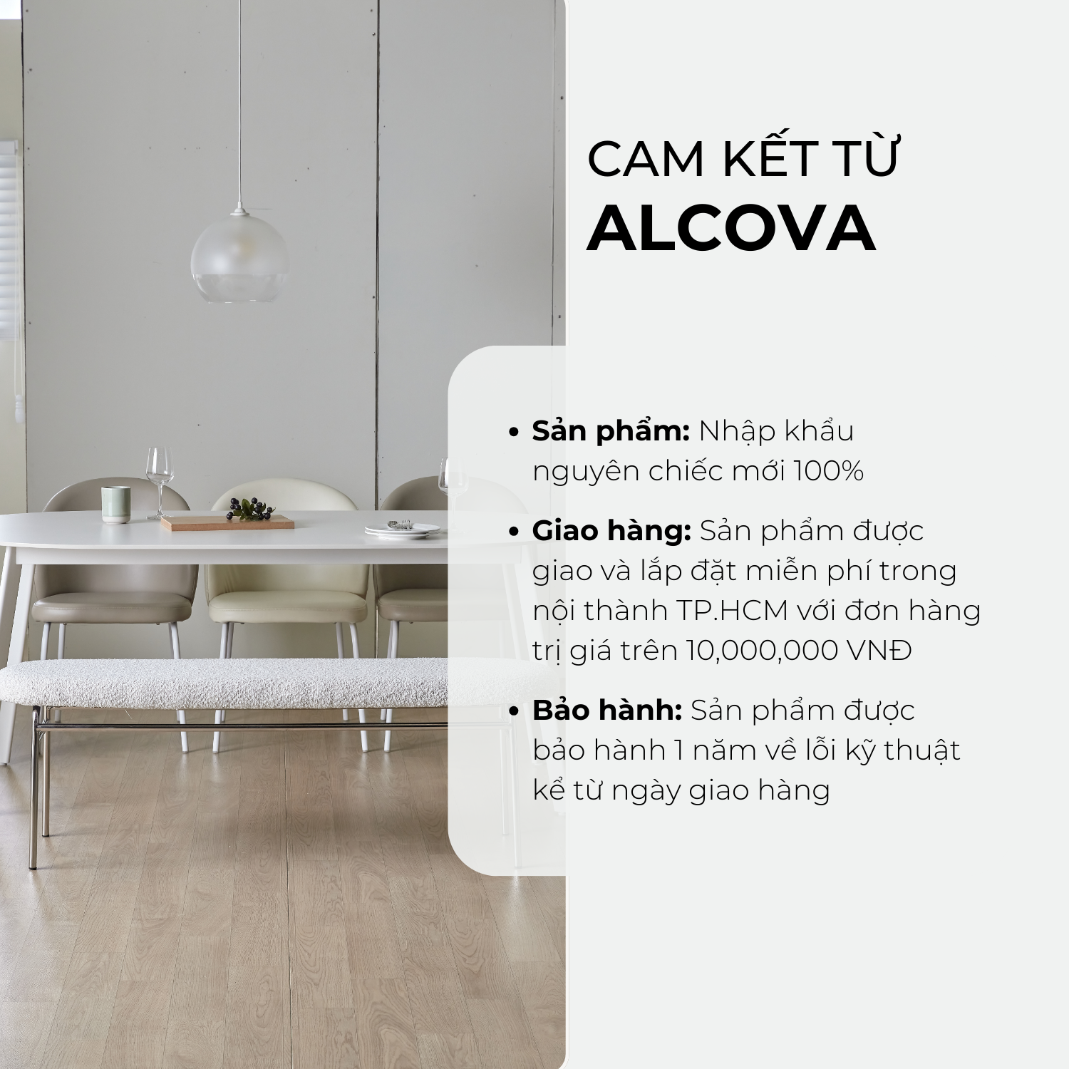 Giao hàng: Sản phẩm được giao và lắp đặt miễn phí trong nội thành TP. HCM với đơn hàng trị giá trên 10,000,000 VNĐ