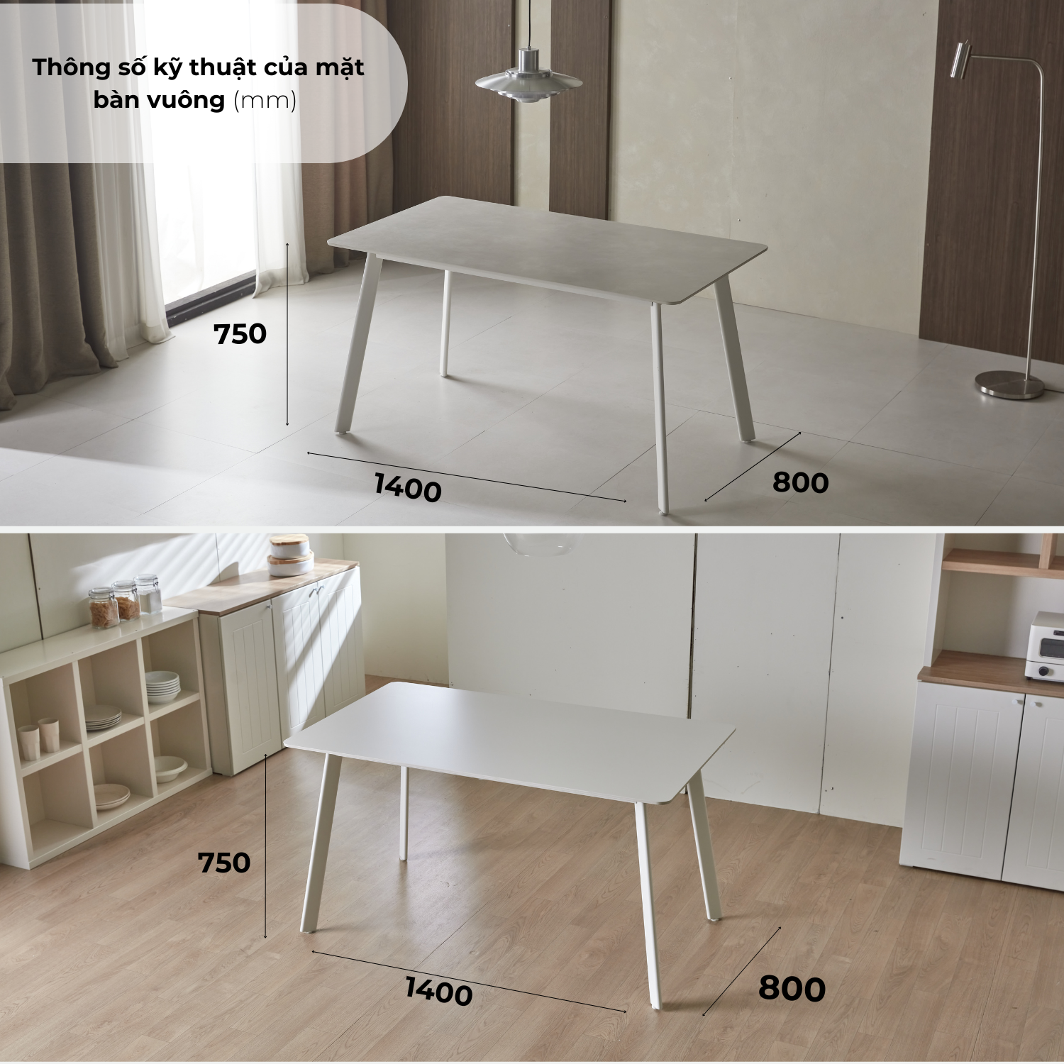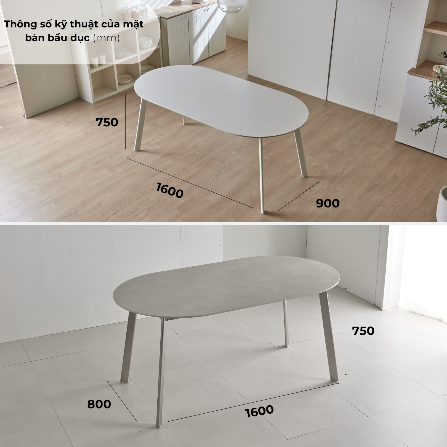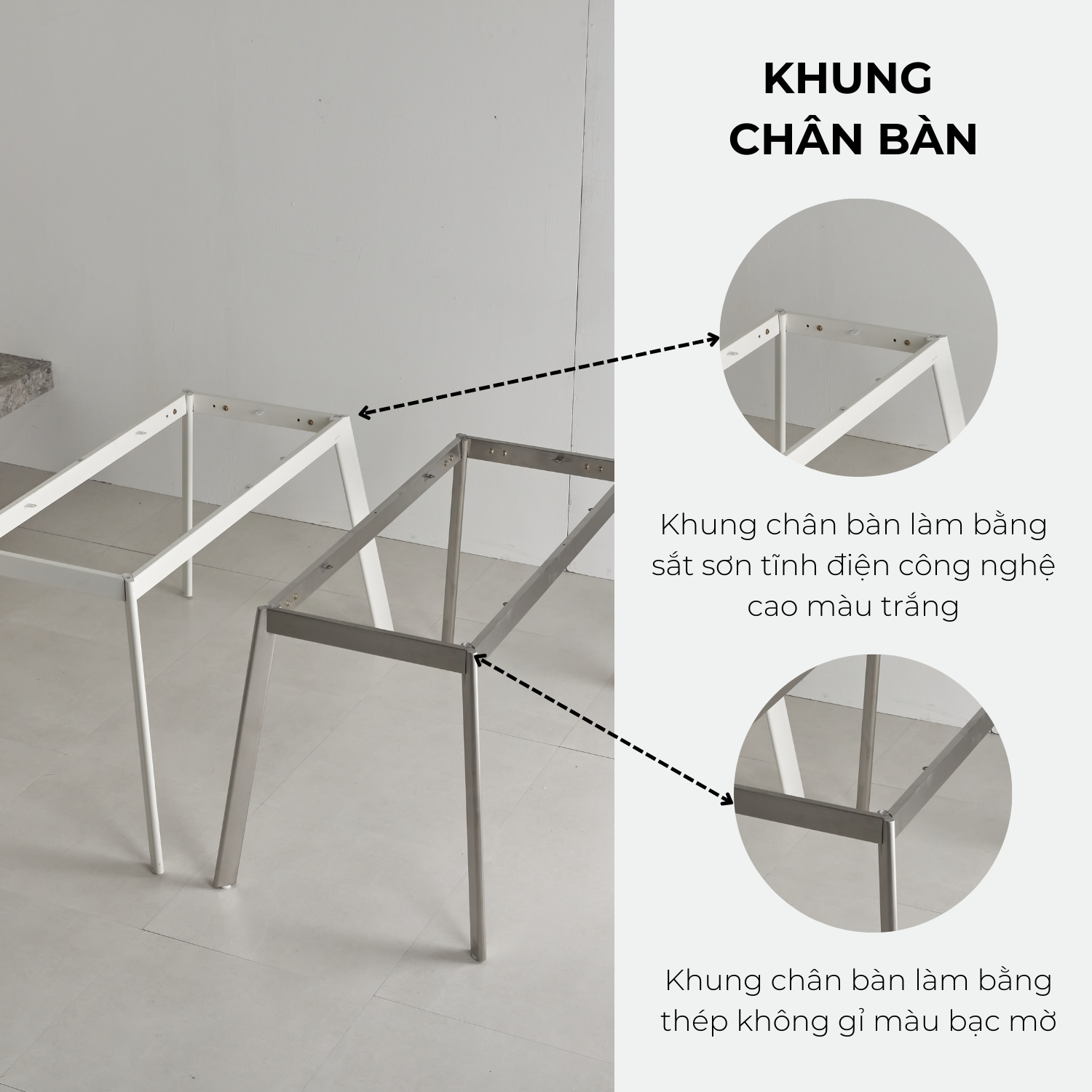 - Khung chân bàn có 2 màu: Sơn tĩnh điện màu trắng sang trọng / Thép không gỉ màu bạc mờ phong cách