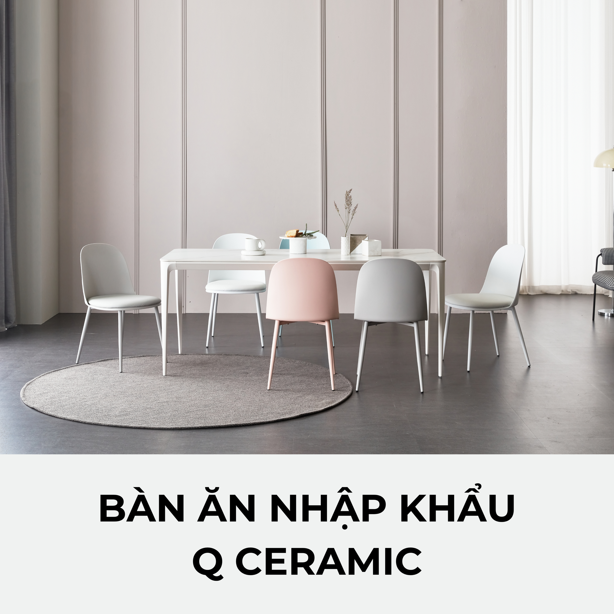 BÀN ĂN Q CERAMIC NHẬP KHẨU (4 CHỖ / 6 CHỖ)