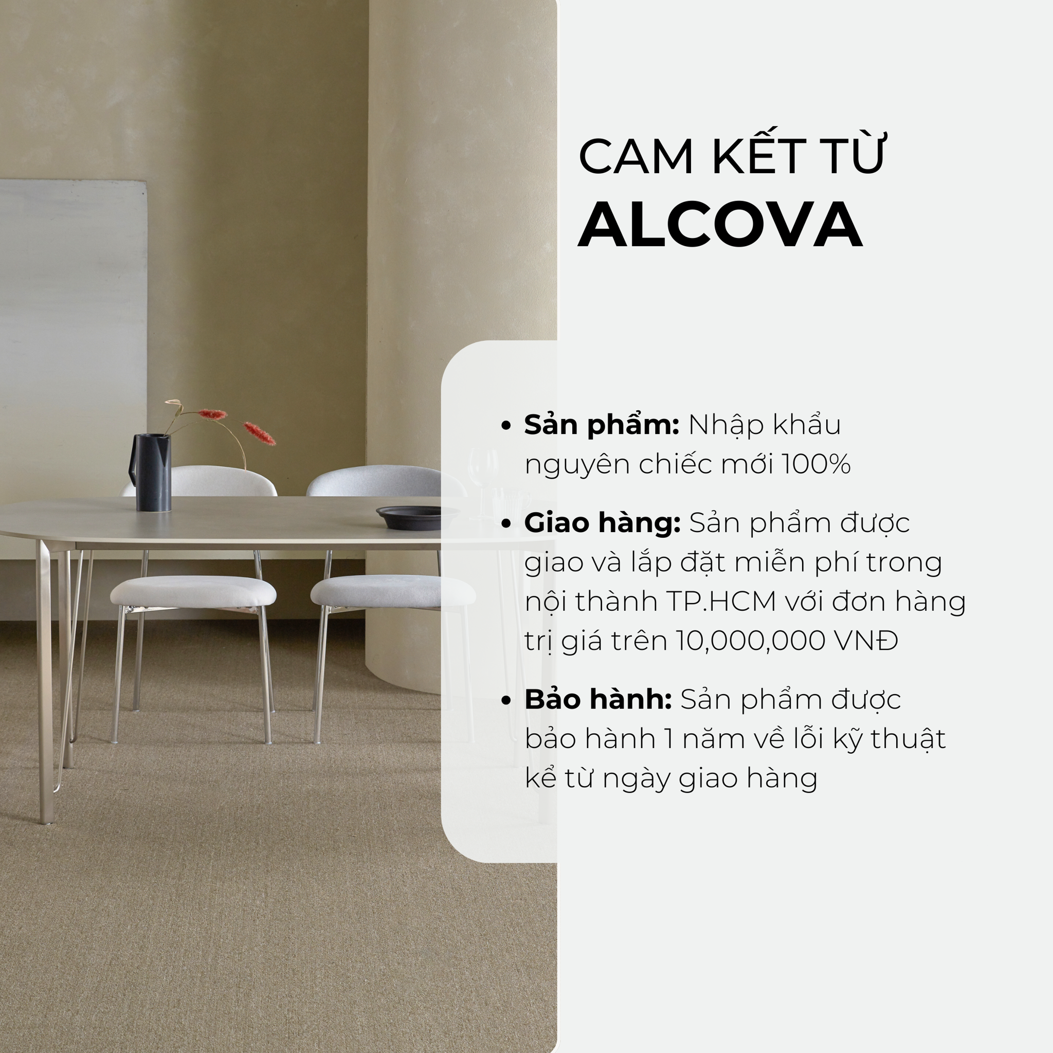 Giao hàng: Sản phẩm được giao và lắp đặt miễn phí trong nội thành TP. HCM với đơn hàng trị giá trên 10,000,000 VNĐ.