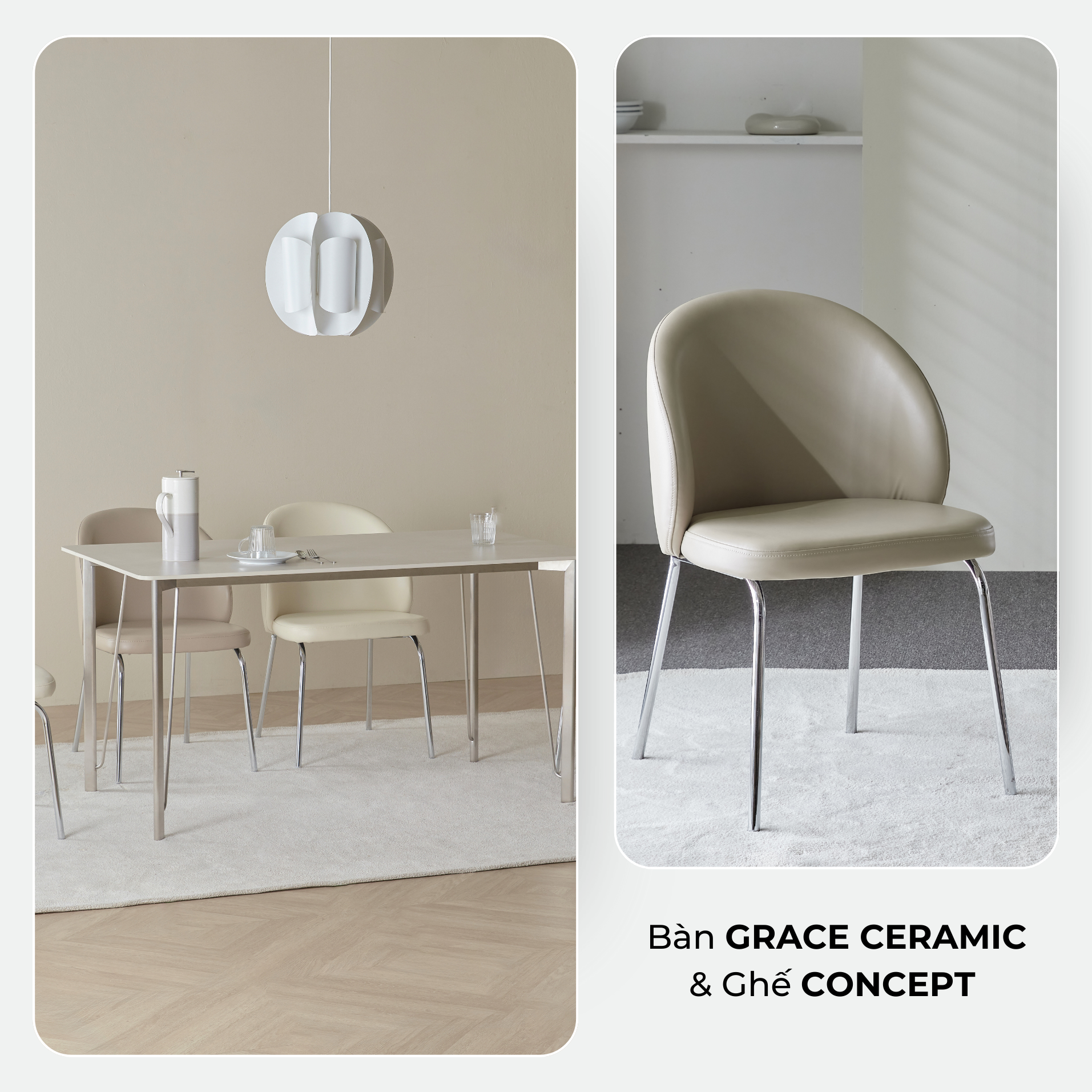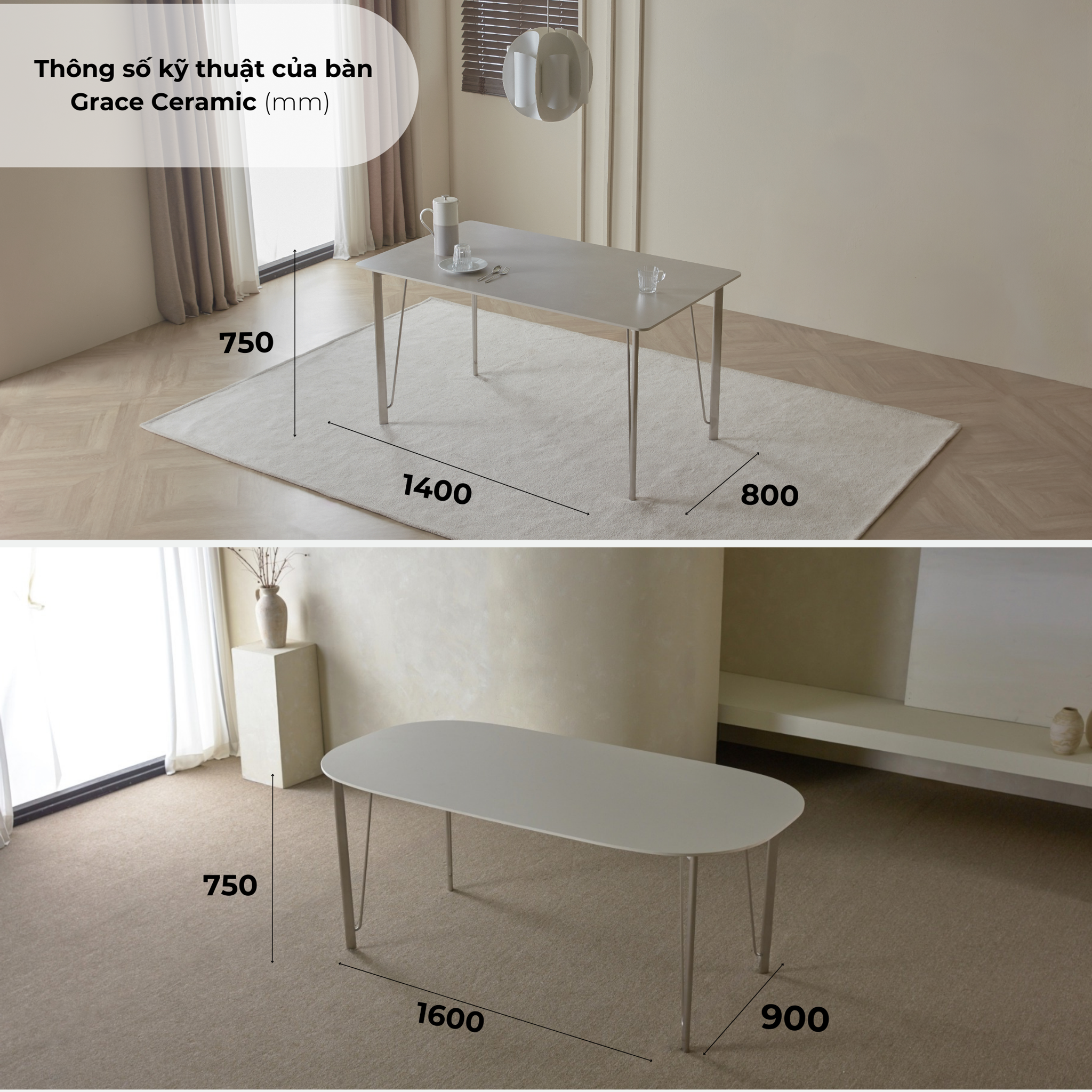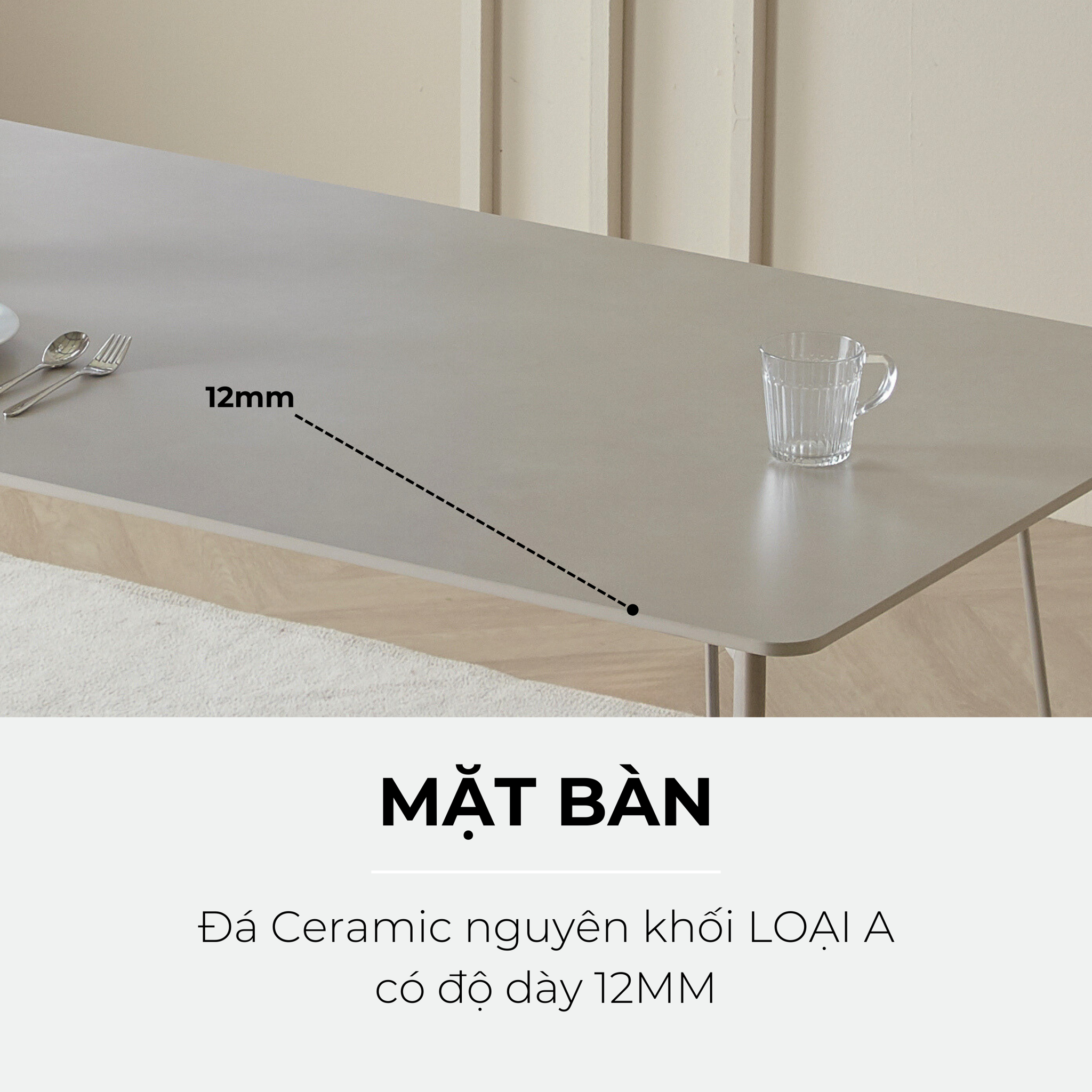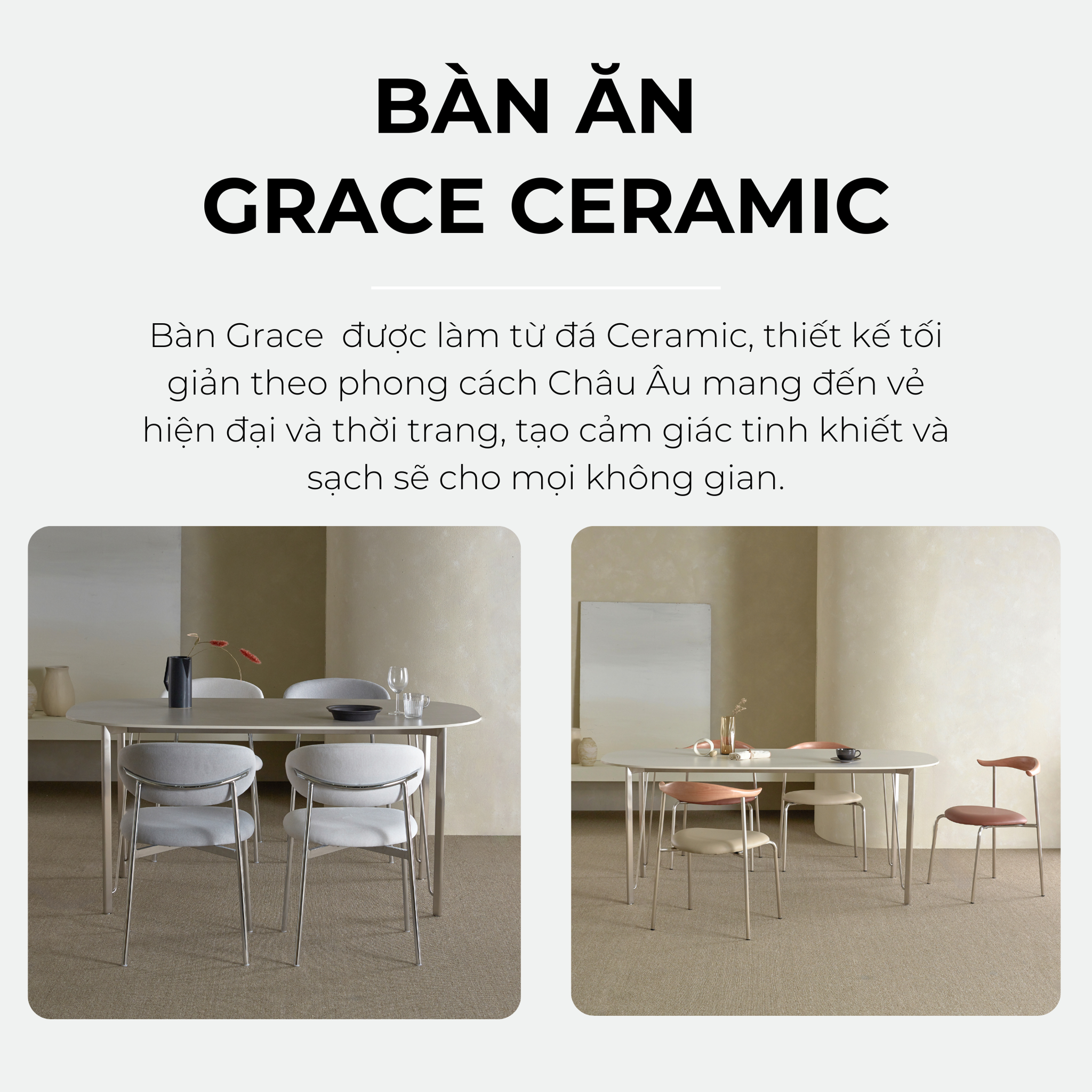 Bàn Grace Ceramic với tông màu xám sang trọng màu trắng mang lại vẻ đẹp tinh khiết và cảm giác sạch sẽ cho mọi không gian.