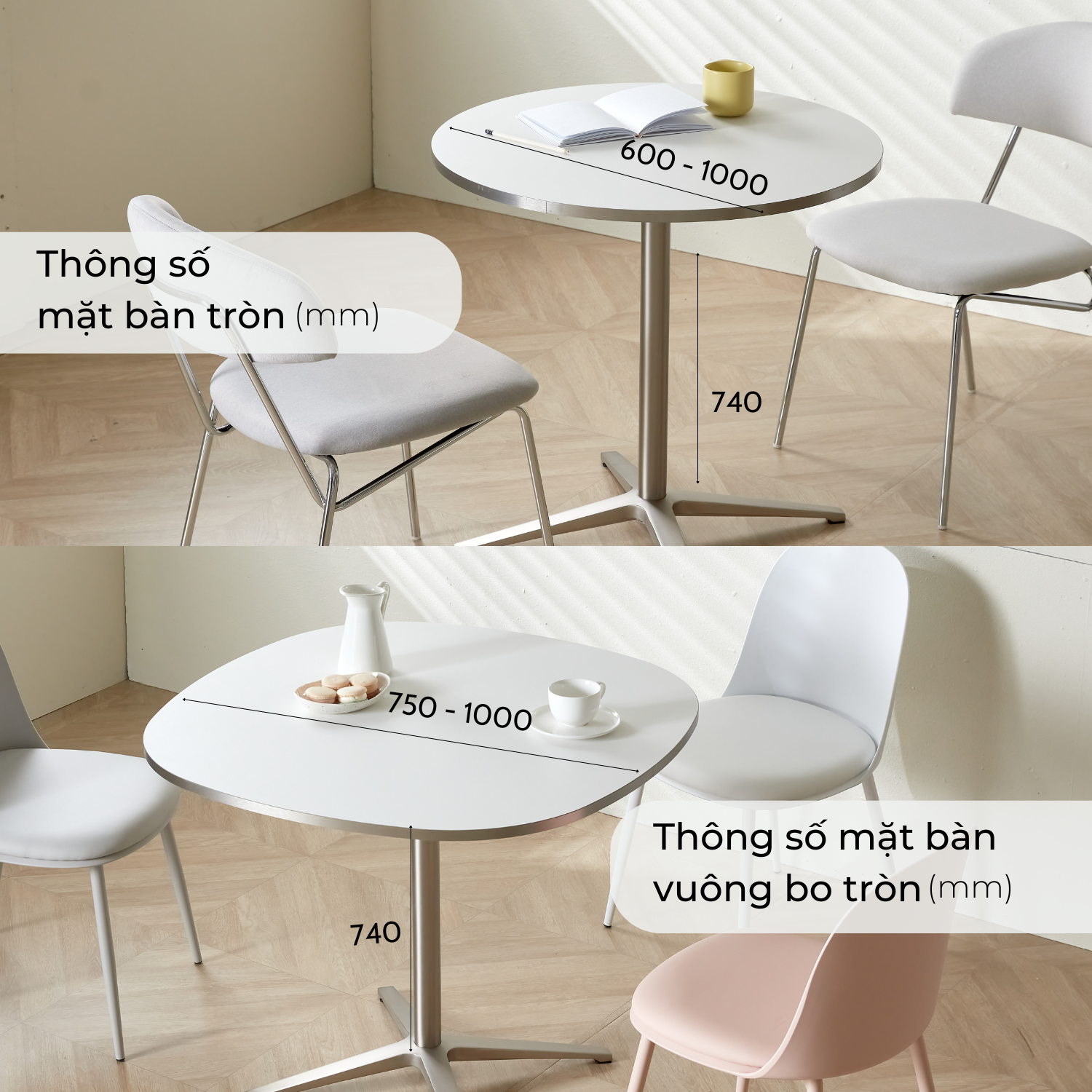 Đường kính 600 / 750 / 900 / 1000 x Cao 740 (mm) - Mặt bàn tròn
