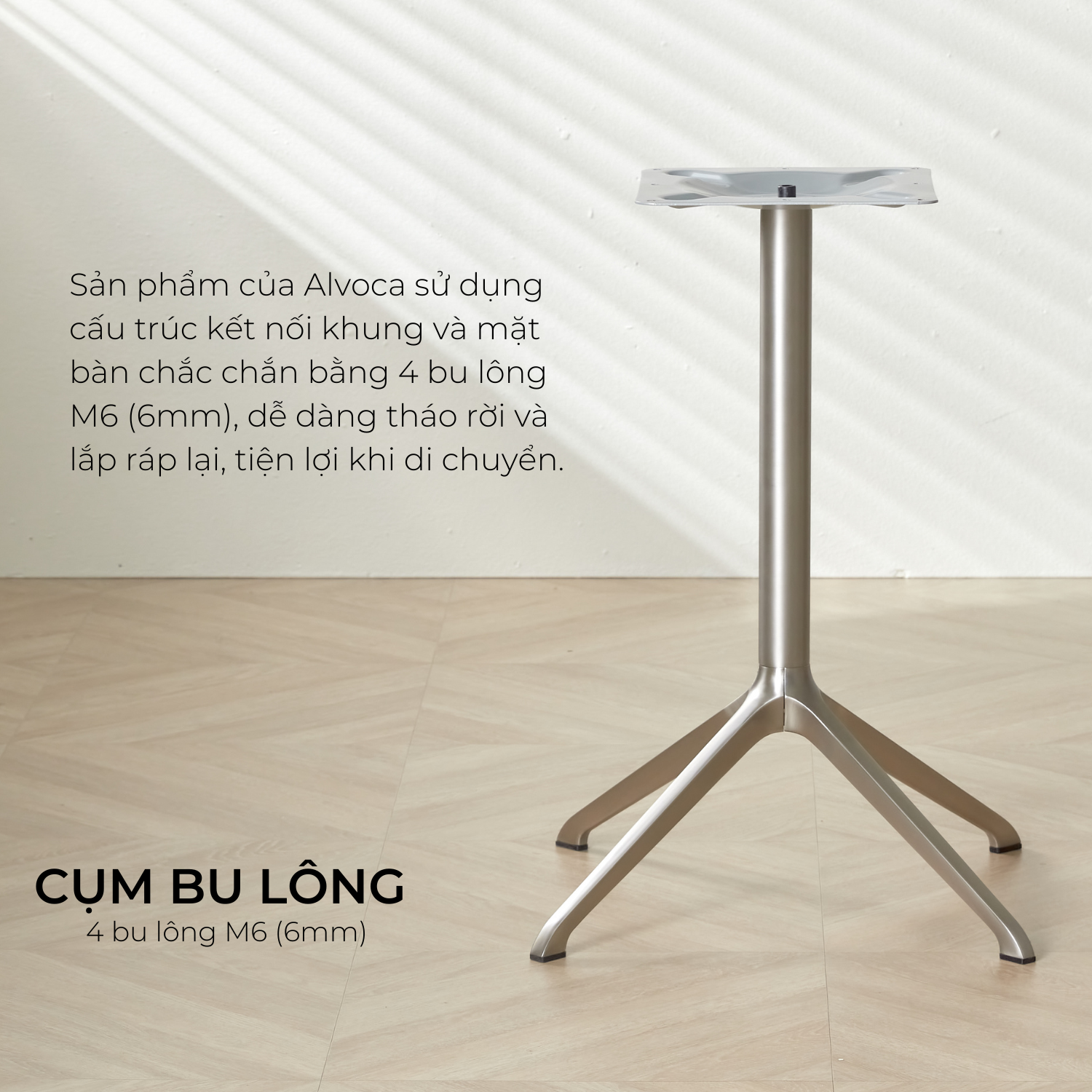 Bàn A HPL được thiết kế tối giản dạng chân trụ bằng nhôm đánh bóng mờ có độ bóng tinh xảo và sạch sẽ nhờ lớp hoàn thiện được gia công tỉ mỉ.