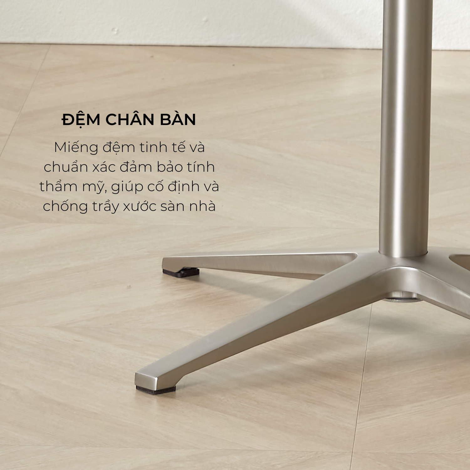 Chân bàn được gắn miếng đệm 1 cách tinh tế giúp cố định và chống trầy xước sàn nhà.