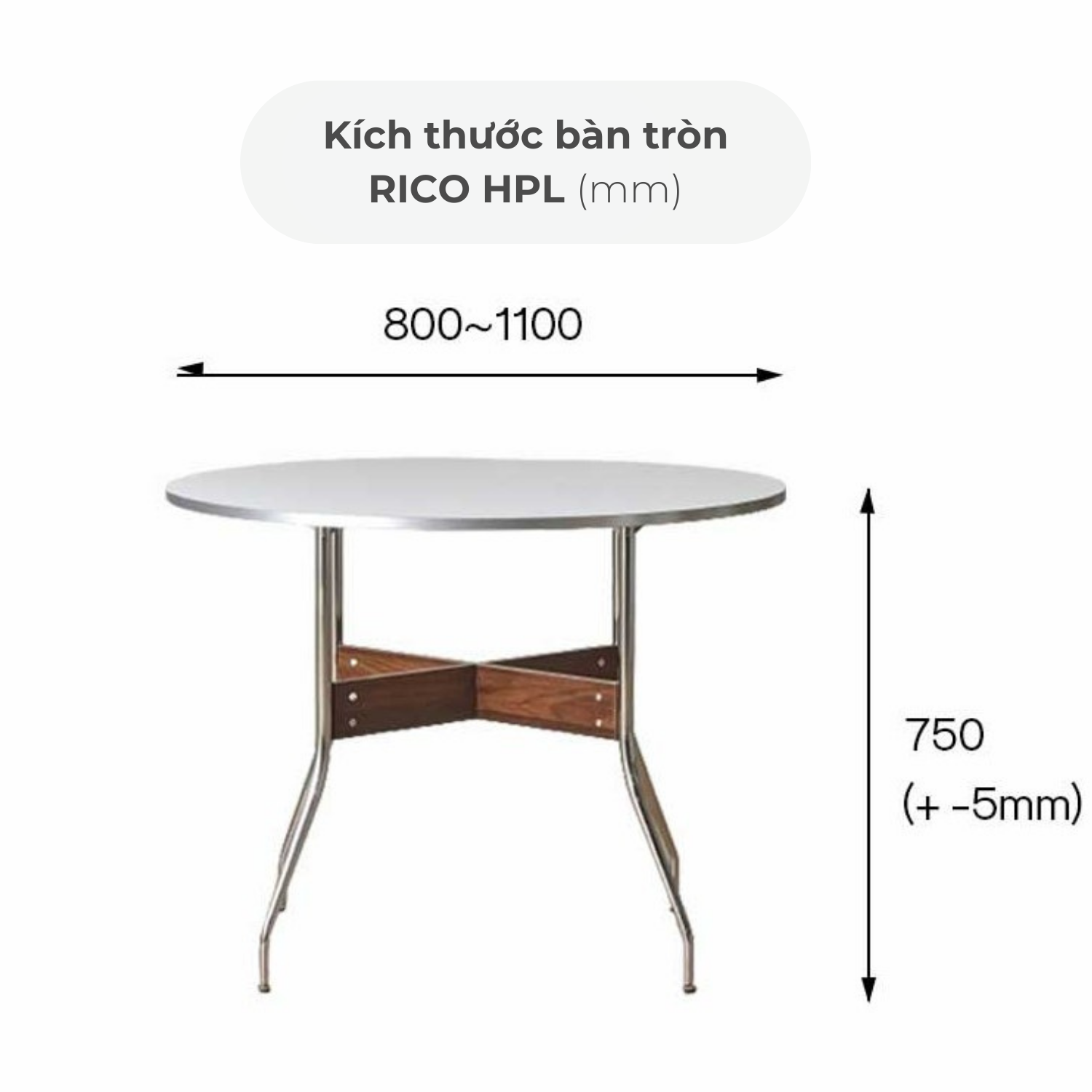Đường kính 800 / 900 / 1100 x Cao 750 (mm) - Mặt bàn tròn
