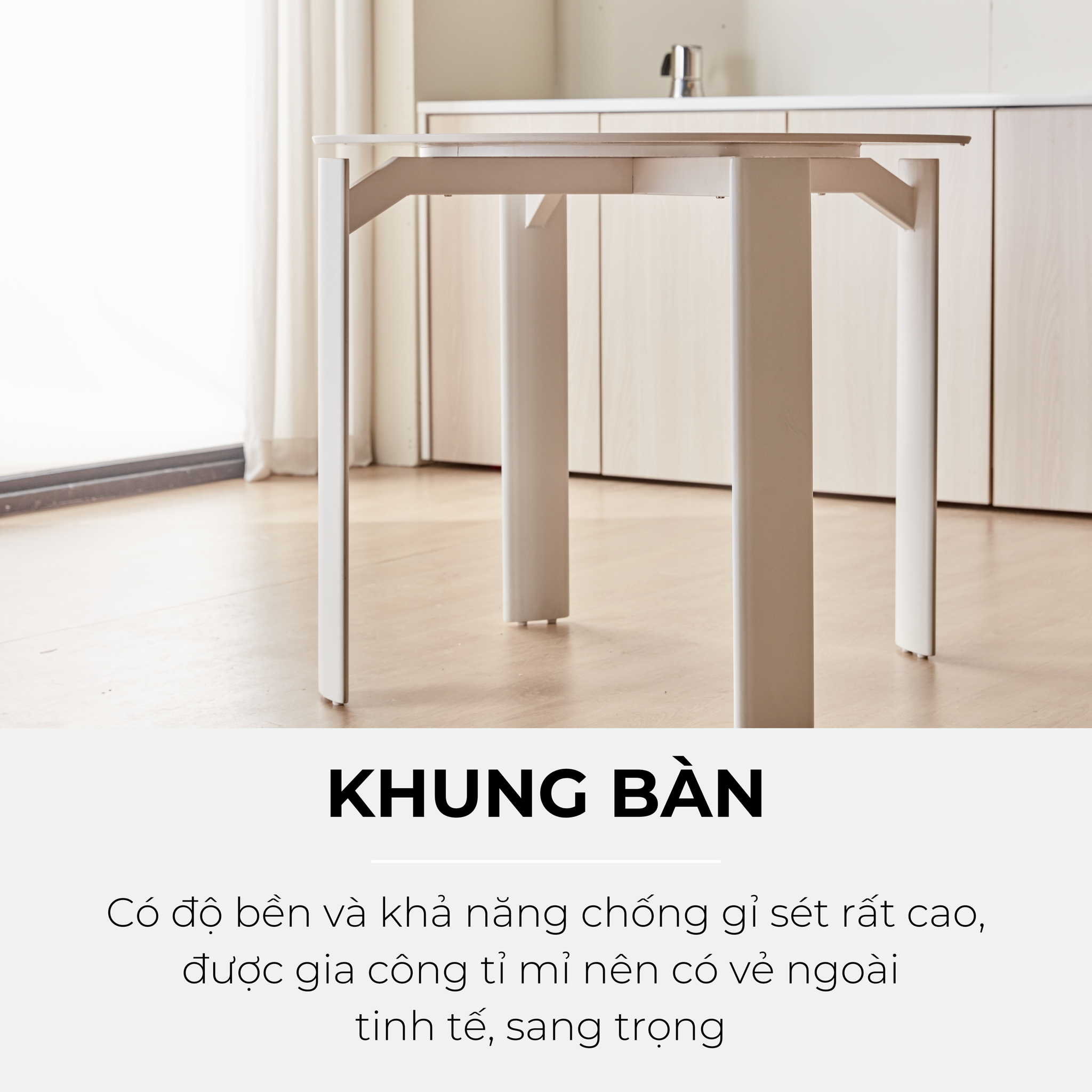 Chân bàn: Sơn tĩnh điện màu trắng sang trọng