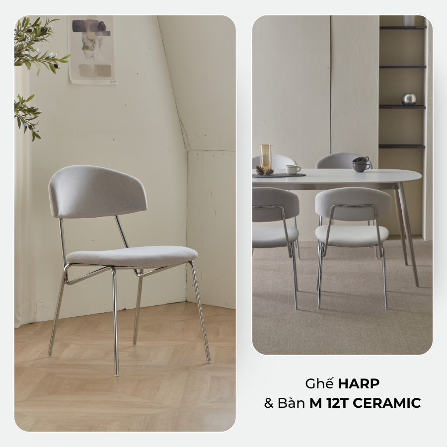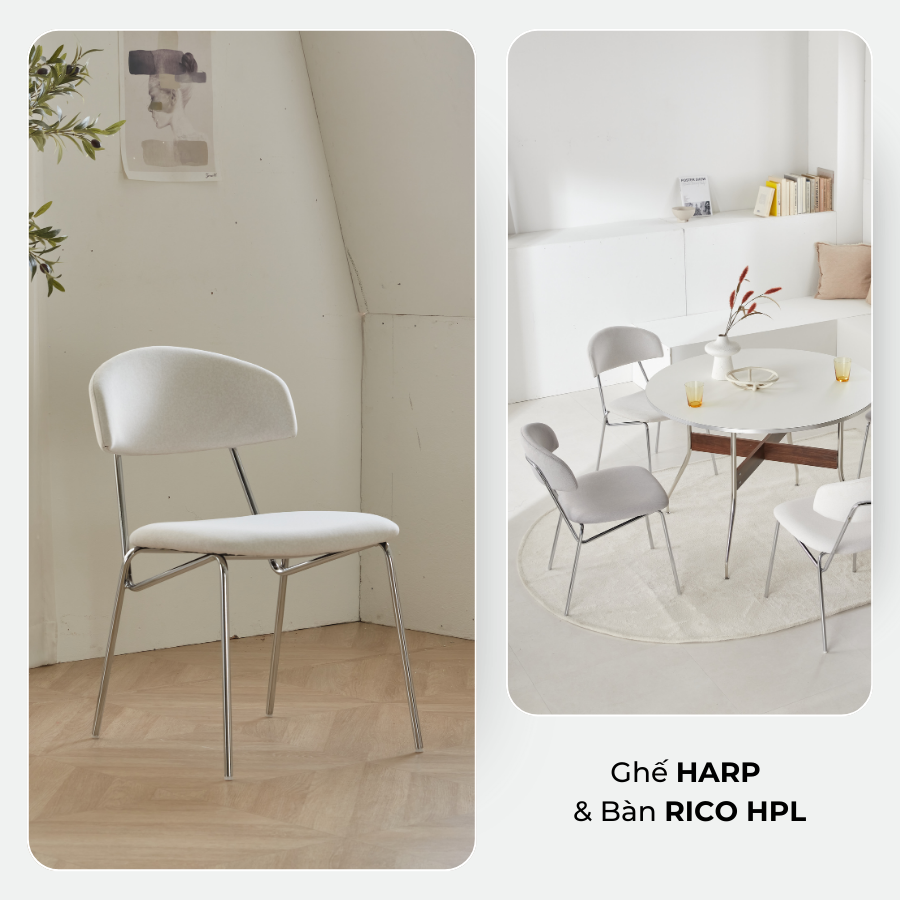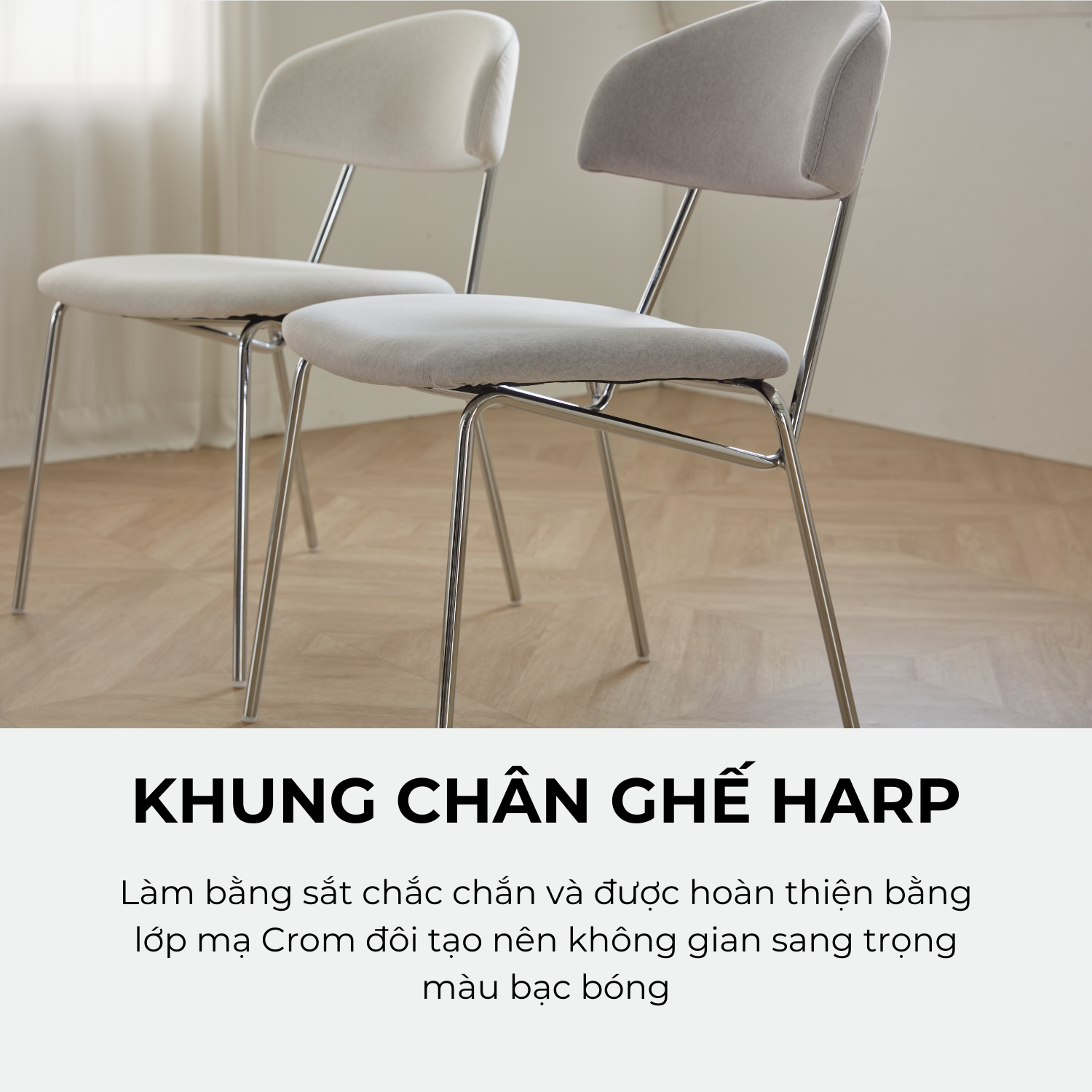 Ghế HARP màu sắc tươi sáng trang nhã kết hợp với với khung chân màu bạc thời thượng là điểm nhấn tuyệt vời cho mọi không gian.