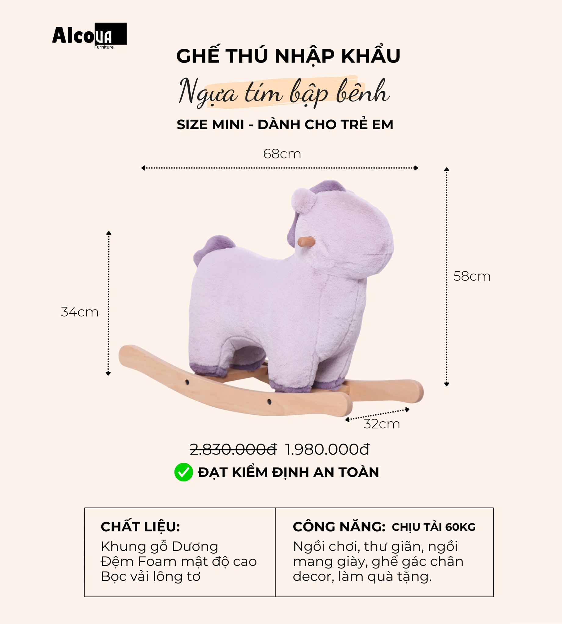 MÔ TẢ CHI TIẾT GHẾ HÌNH THÚ BẬP BÊNH NGỰA TÍM