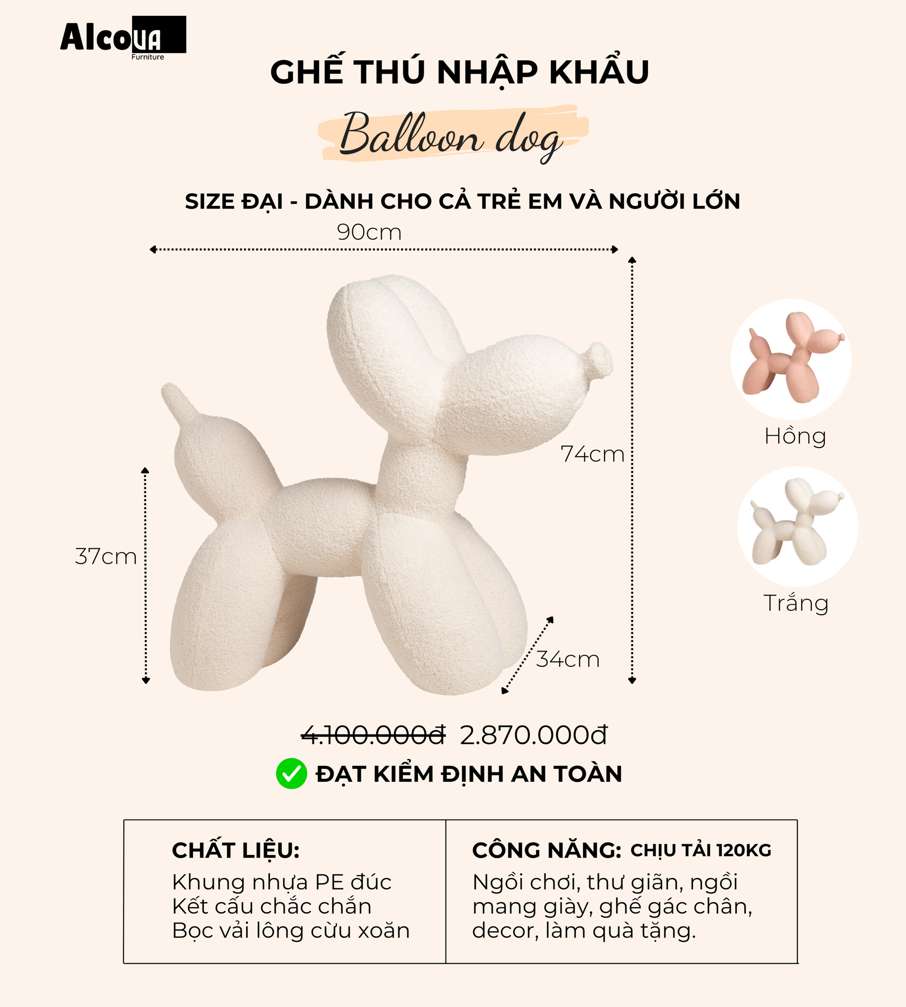 MÔ TẢ CHI TIẾT GHẾ HÌNH THÚ CƯNG BALLOON DOG