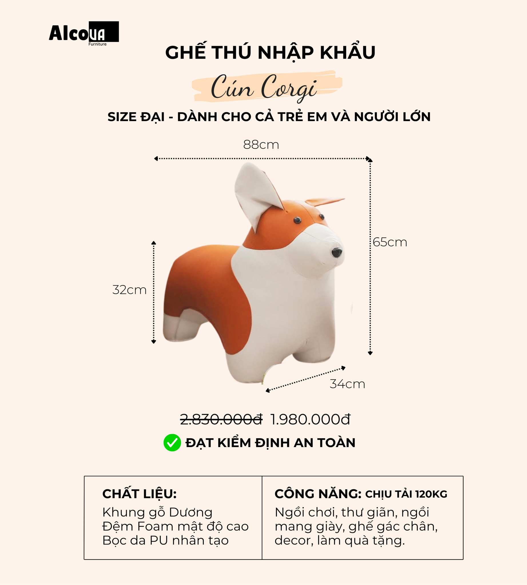- Tên sản phẩm: GHẾ THÚ CÚN CORGI