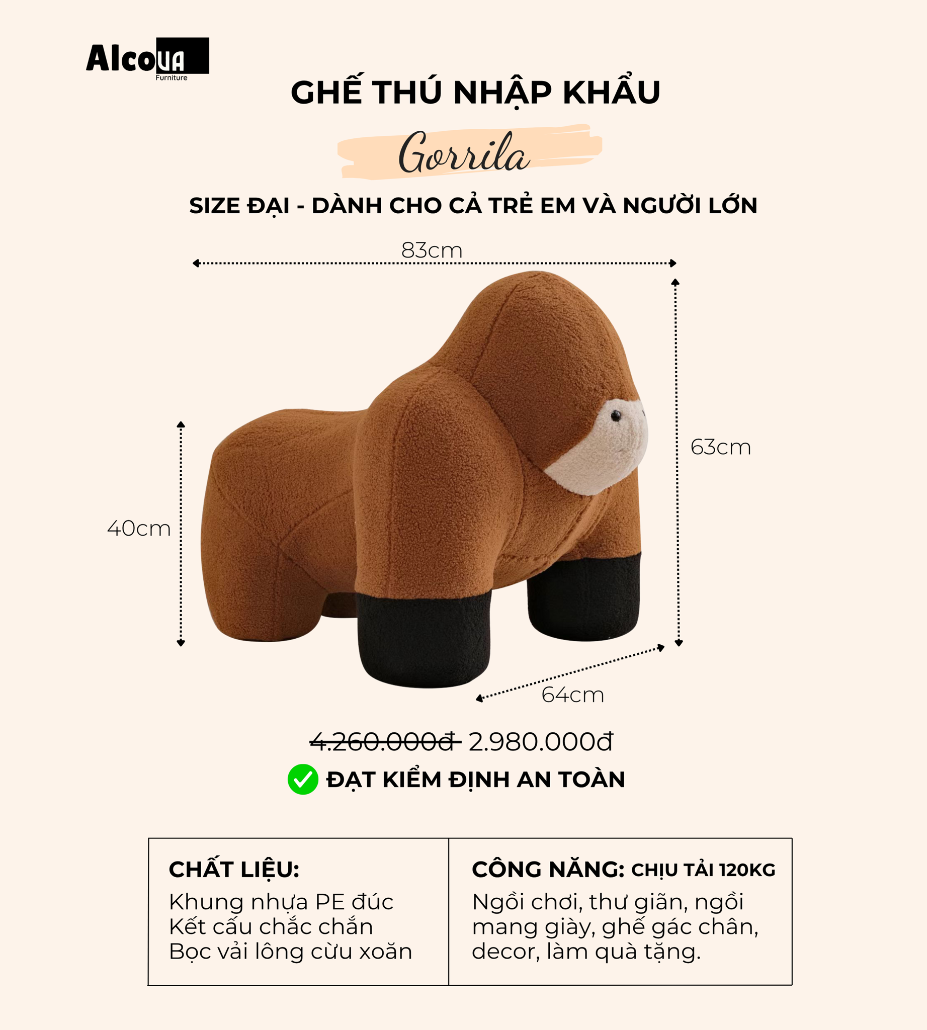 MÔ TẢ CHI TIẾT GHẾ HÌNH THÚ CƯNG GORILLA
