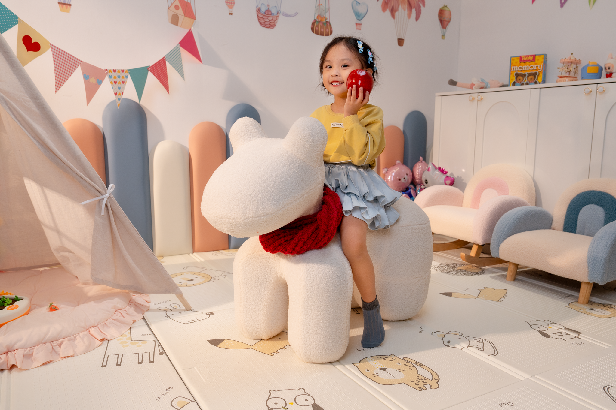 Bên cạnh đó, với hình dáng thú dễ thương, chiếc ghế này còn là món đồ trang trí tuyệt vời cho không gian sống. Không chỉ giúp bé chơi an toàn, chiếc ghế còn là điểm nhấn tinh tế, giúp căn nhà thêm phần rực rỡ và vui nhộn.