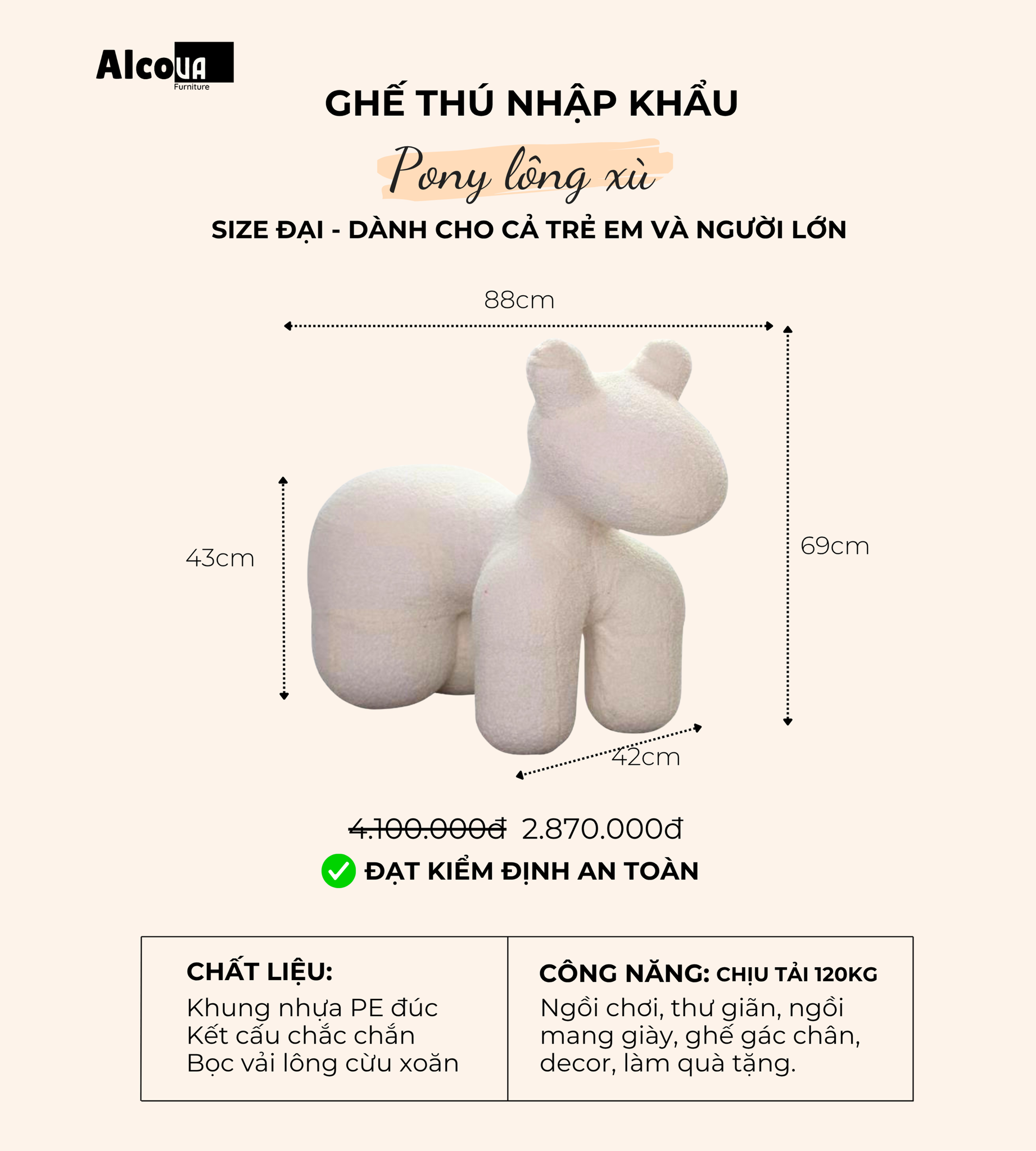 MÔ TẢ CHI TIẾT GHẾ HÌNH THÚ CƯNG PONY LÔNG XÙ