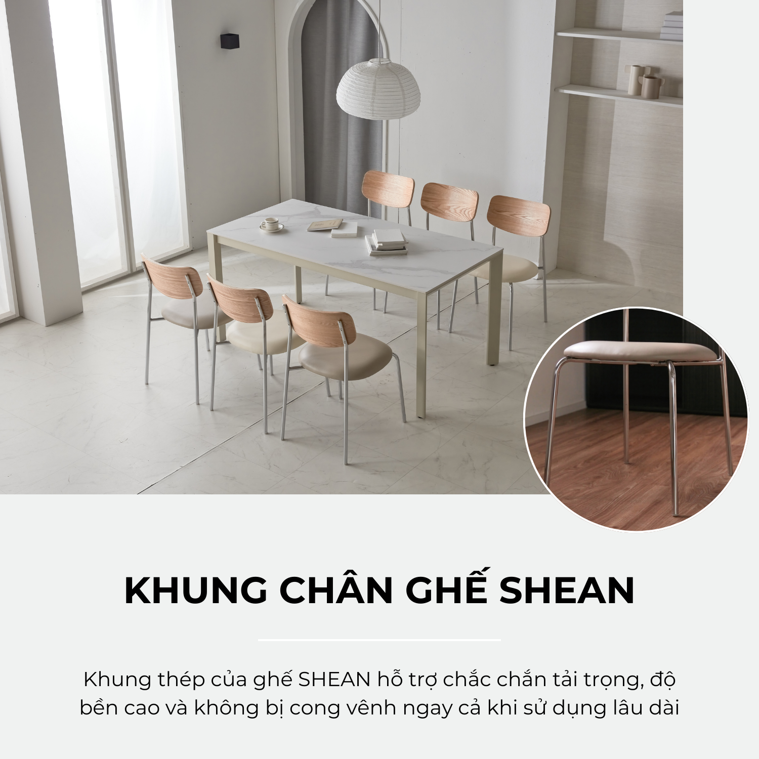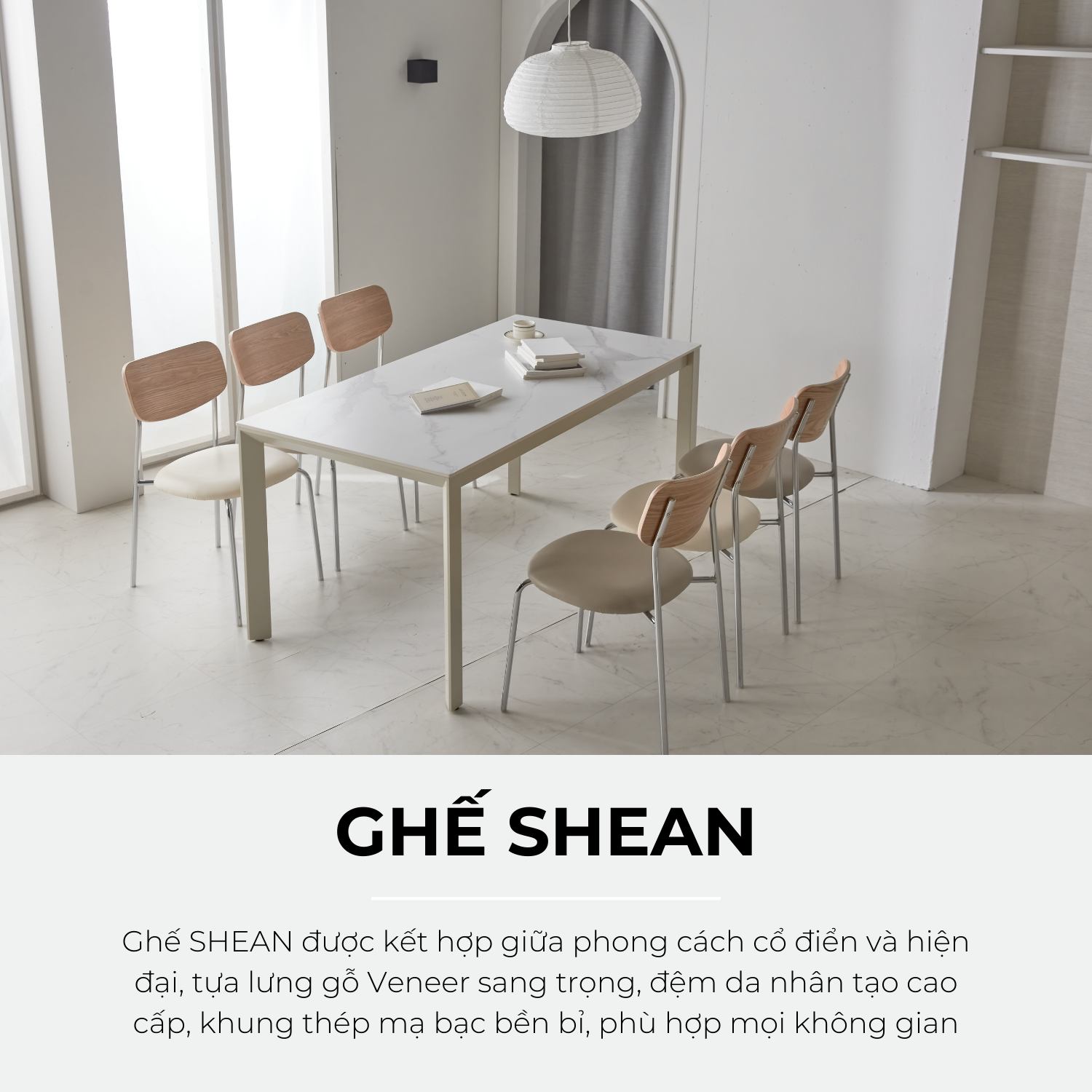 Ghế SHEAN mang hai phong cách cổ điển và hiện đại nên kết hợp một cách tự nhiên với bất kỳ kiểu dáng ngôi nhà nào và làm cho không gian của bạn trở nên đặc biệt.