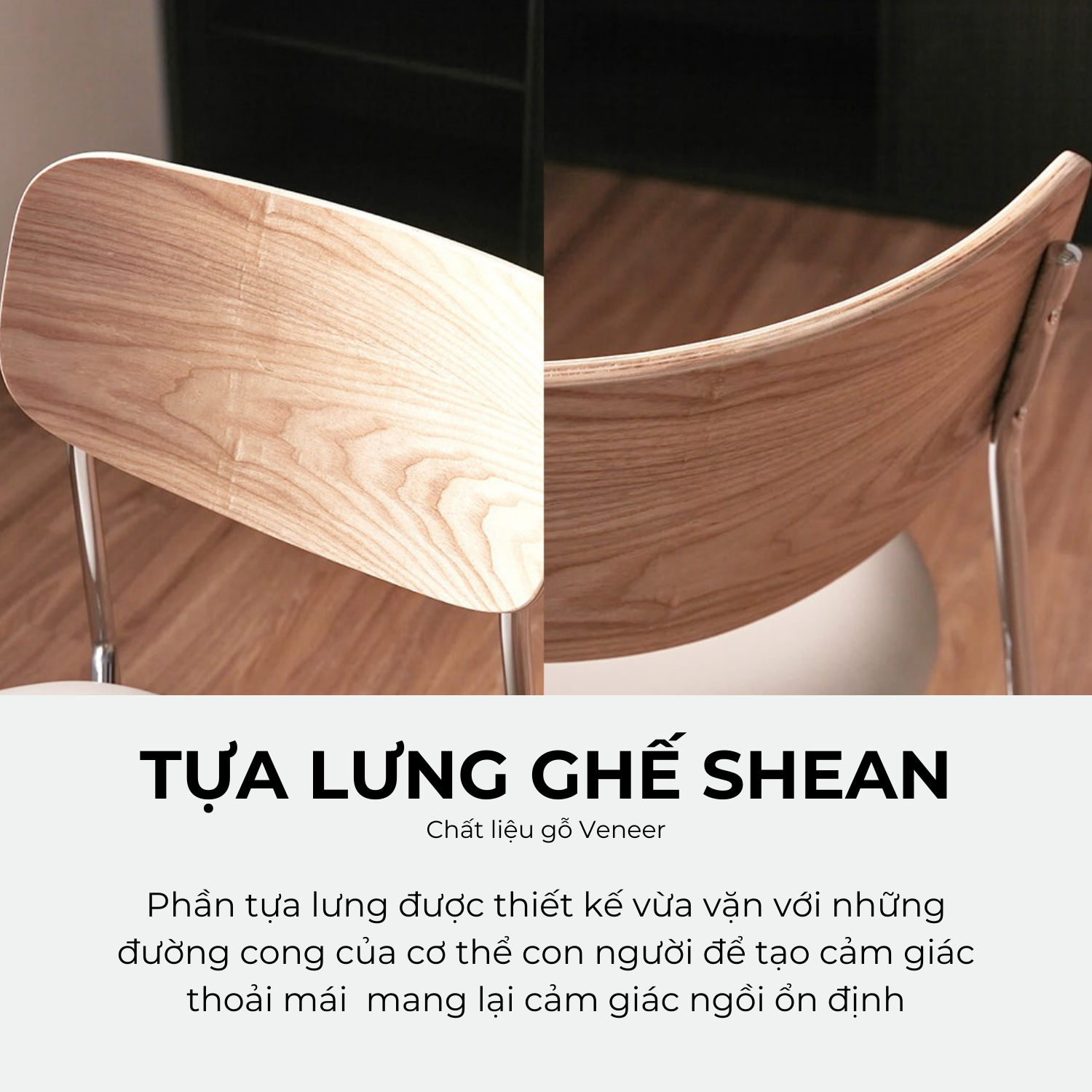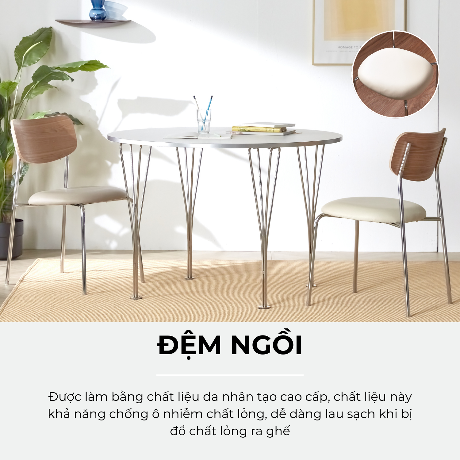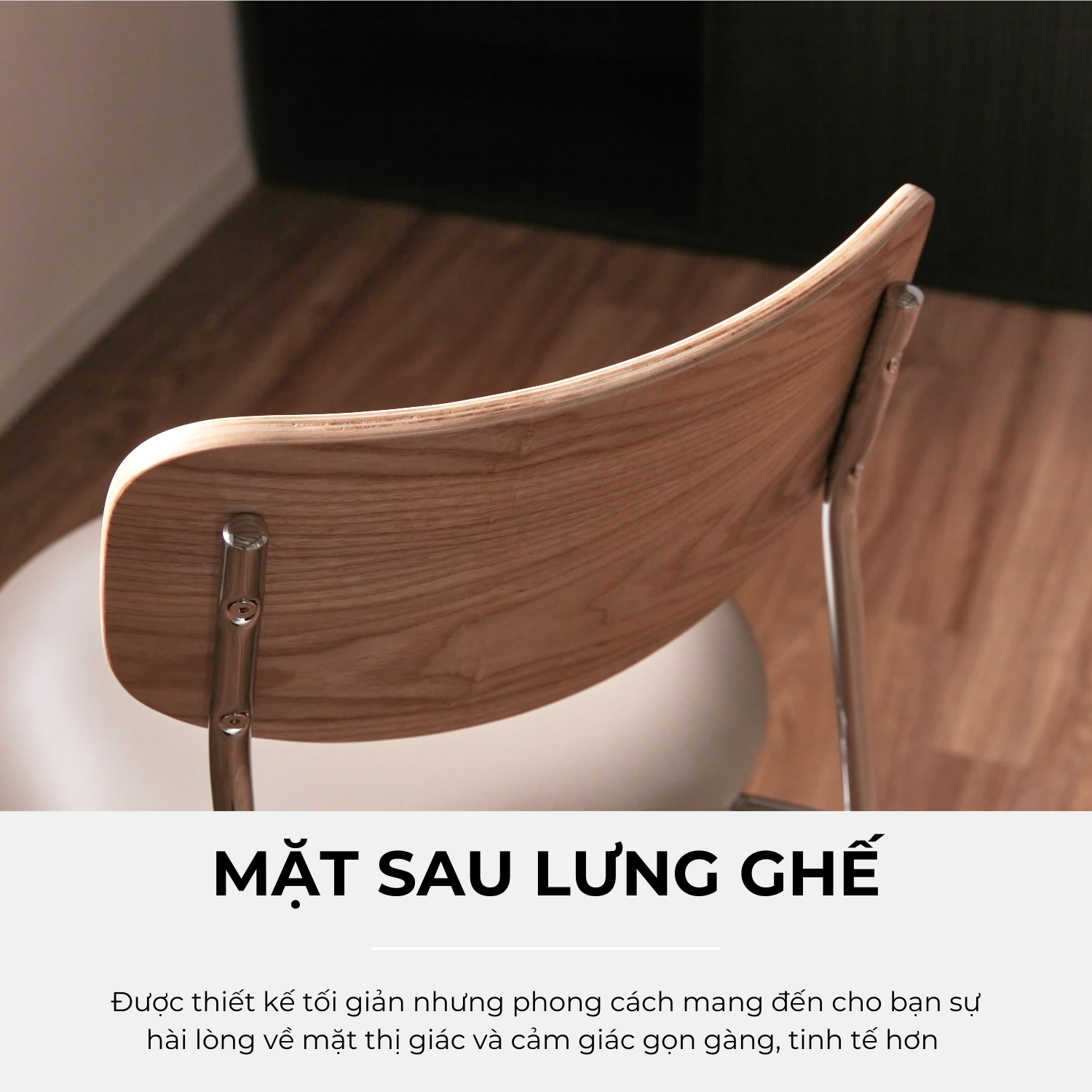 Chất liệu: Khung thép mạ Chrome / Da nhân tạo / Veneer gỗ tự nhiên