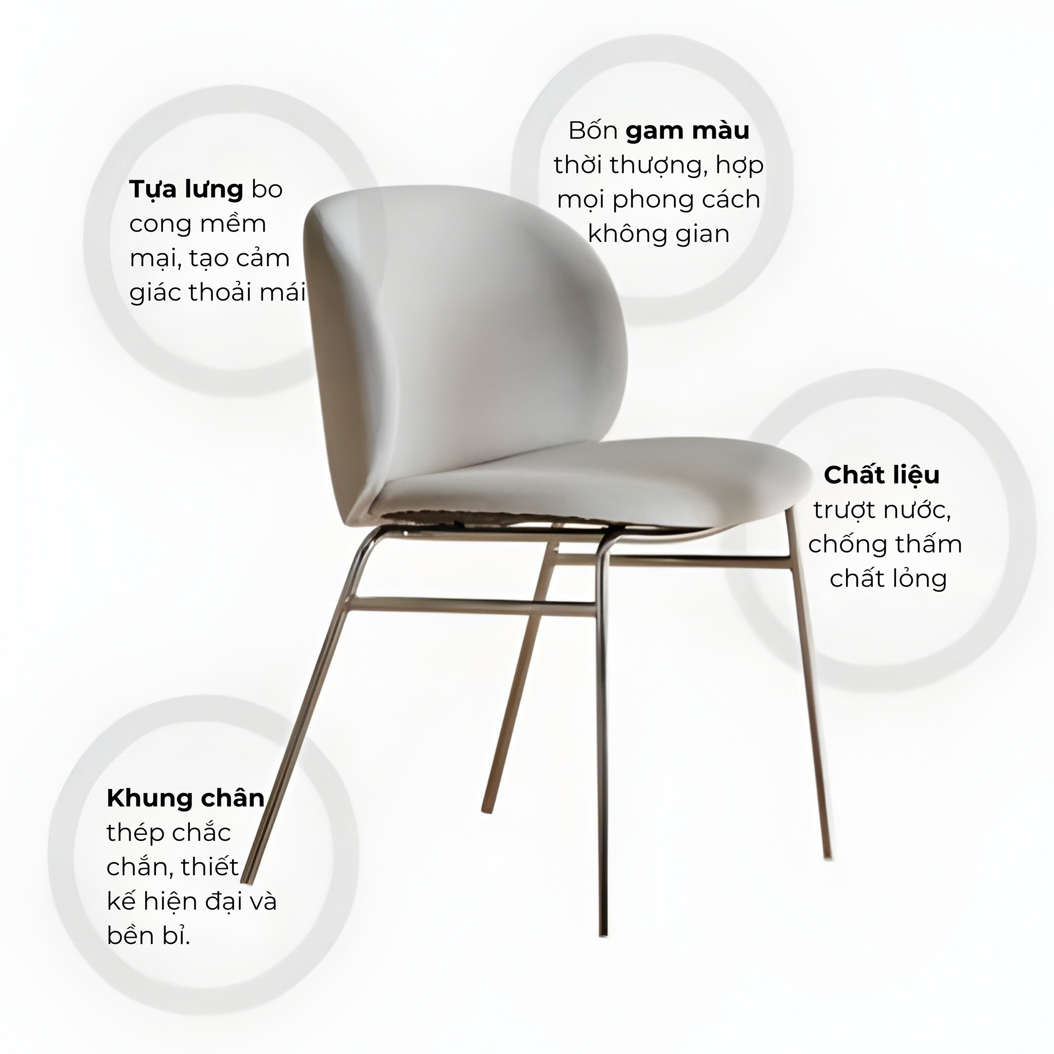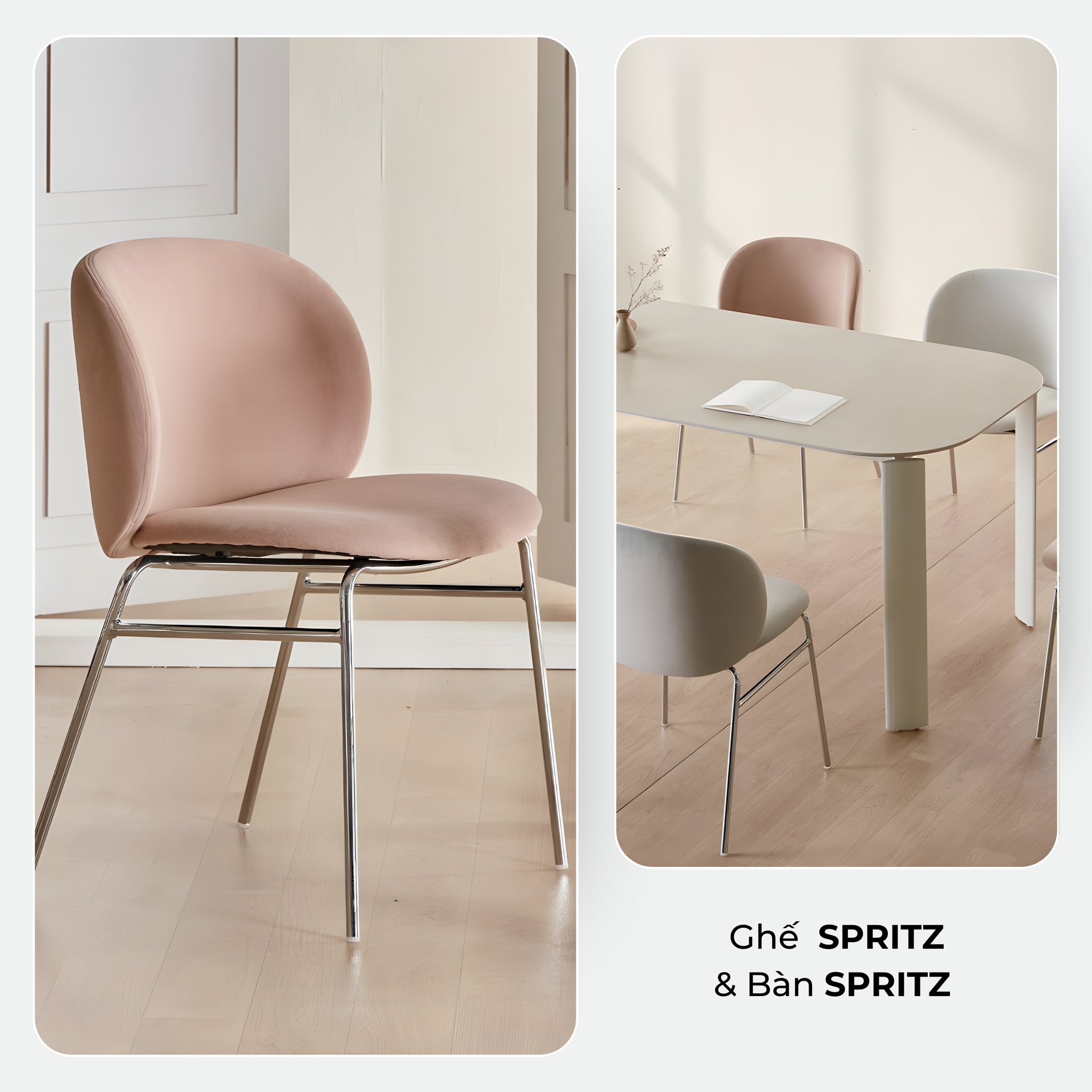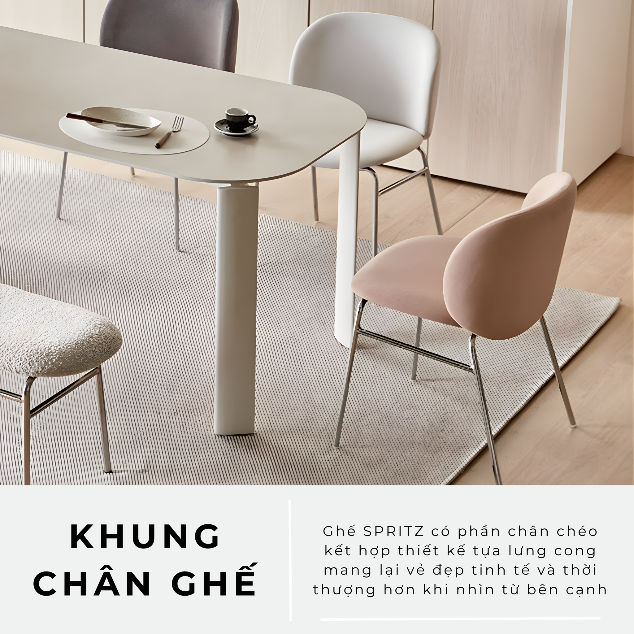 Ghế SPRITZ màu sắc tươi sáng trang nhã kết hợp với với khung chân màu bạc thời thượng là điểm nhấn tuyệt vời cho mọi không gian.
