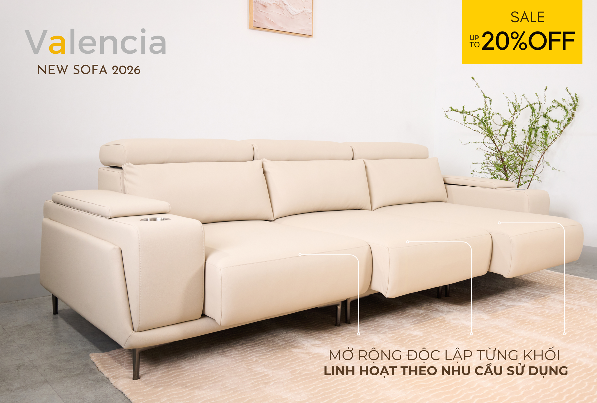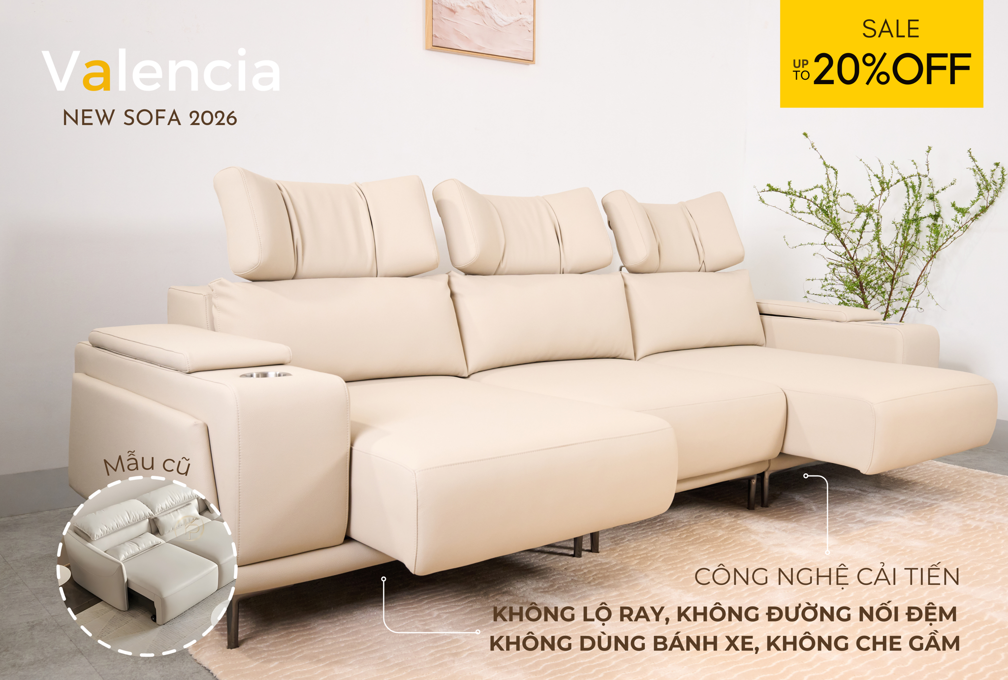 Sofa Điện Valencia Nhập Khẩu Mẫu mới 2026 – Lần Đầu Ra Mắt Tại Việt Nam mang đến trải nghiệm hoàn toàn khác biệt, thiết kế tối giản cùng gam màu be trung tính thanh lịch, mang sắc độ ấm vừa phải, dễ dàng hòa quyện cùng các phong cách nội thất cao cấp.